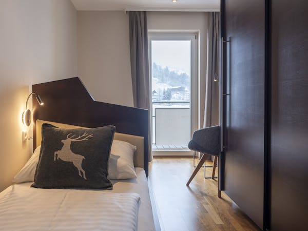Modern furnished 3 Room Suite with panoramic mountain view and guests who like a bit extra space for a longer stay. The suite offers two separate bedrooms and living room with a sofa bed for a fifth or sixth person.