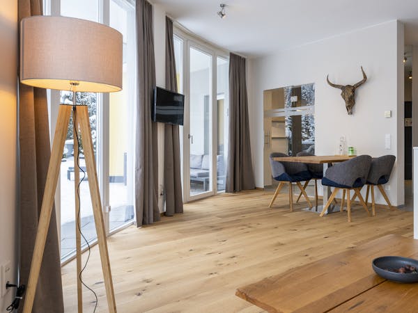 Modern furnished 3 Room Suite with panoramic mountain view and guests who like a bit extra space for a longer stay. Our suite "Westgipfel" offers 2 separate bedrooms, 1 bathroom, living area, fully equipped kitchen, with sofa bed for two additional guests, fully equipped kitchen and a cosy dining area.